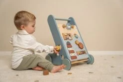 Deze tuimelaar nodigt uit tot kijken, pakken, duwen en luisteren. Geef de tuimelaar een duwtje en de balletjes en ringetjes bewegen en maken geluidjes. En zoals het een tuimelaar betaamt; duw tegen de tuimelaar dan kantelt deze maar vervolgens komt hij altijd weer terug in verticale positie.