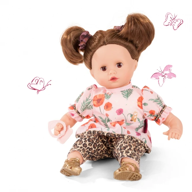 De Muffins zijn gevuld met pluizige watten en korrels, waardoor ze echt knuffelbaar zijn. Kinderen kunnen ze gemakkelijk aan- en uitkleden. Deze Muffin heeft bruine slaapogen.