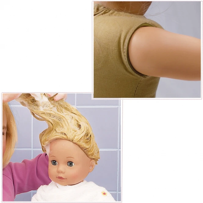 Dit poppenlichaam is gemaakt van stof en gevuld met polyesterwol. Het lijfje is nog steeds stevig genoeg om de pop te laten staan. Precious Day Girl Elisabeth is ook volledig beweegbaar. Voor deze poppen worden alleen hoogwaardig haar met een natuurlijke uitstraling gebruikt. Het haar is in het hoofd van de pop genaaid en is zeer duurzaam. Kinderen kunnen het gemakkelijk wassen, stylen en kammen (zie productinformatie). De fantasie van uw kind kent bijna geen grenzen. Elisabeth heeft bruine slaapogen.